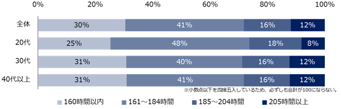 【図5】「正社員(フルタイム勤務)」の方に伺います。1ヵ月の労働時間を教えてください。(年代別)