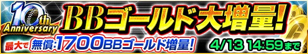 10周年を記念してお得なBBゴールド増量キャンペーンを実施いたします。最大1,700BBゴールドの増量で大変お得となっております。