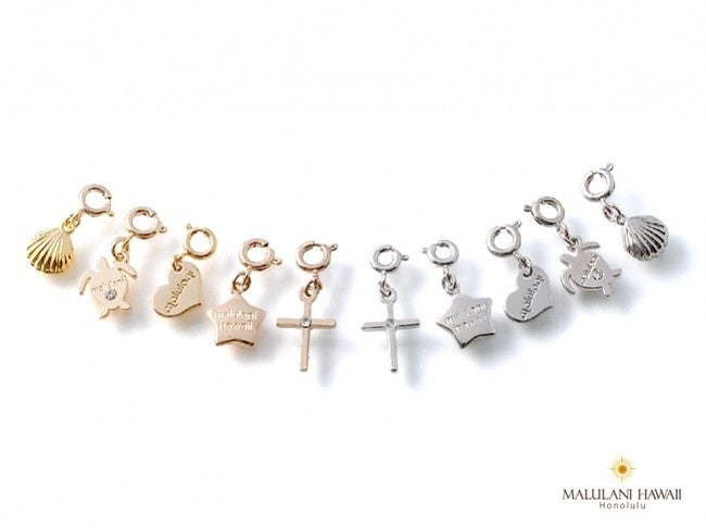 ハートやスター、シェルやホヌ(ウミガメ)など、おしゃれのポイントにもなるチャームは、ブレスレットはもちろん、お好きな箇所に付けてお楽しみいただけます。