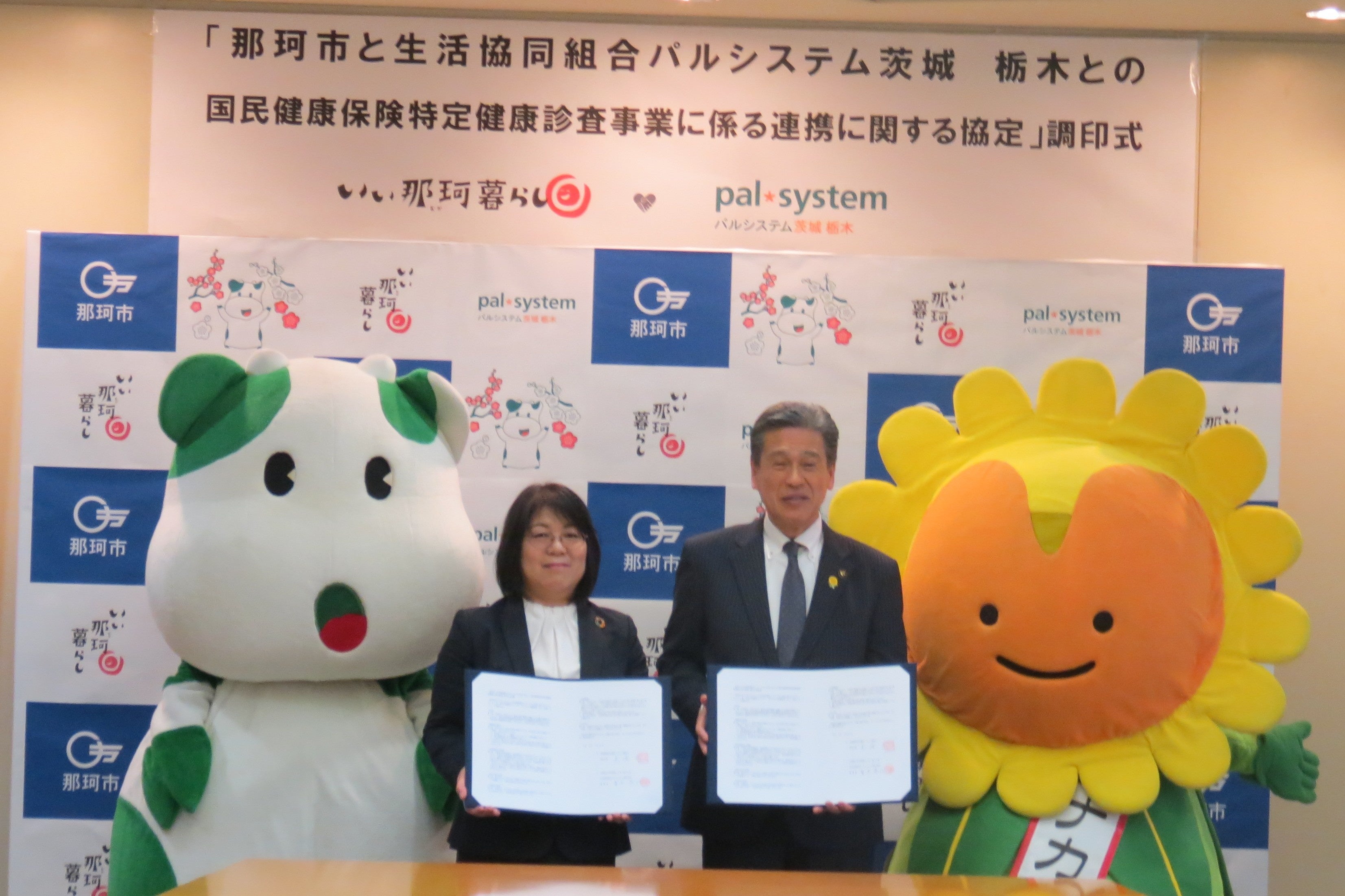 生活協同組合パルシステム茨城 栃木(本部:水戸市梅香、理事長:青木恭代)と那珂市(先﨑光市長)は3月26日(木)、「国民健康保険特定健康診査事業に係る連携協定」を締結しました。健診事業で自治体が生協と連携を結ぶのは県内初めてです。協定書に基づき、那珂市国民健康保険に加入する健診対象者へごはんパックや天然水などから選べるギフトを届けます。行政と生協の協働により、地域住民の健康管理を推進します。