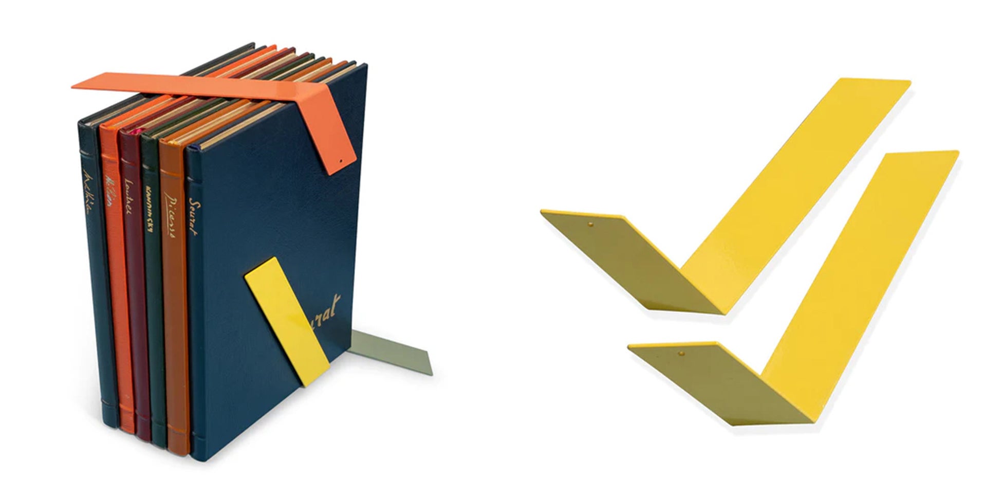 一枚の板を曲げて作られた、シンプルで安定したブックエンド。数冊の本にも大量の本にも対応したミニマルなデザインです。(同色2個入り)
