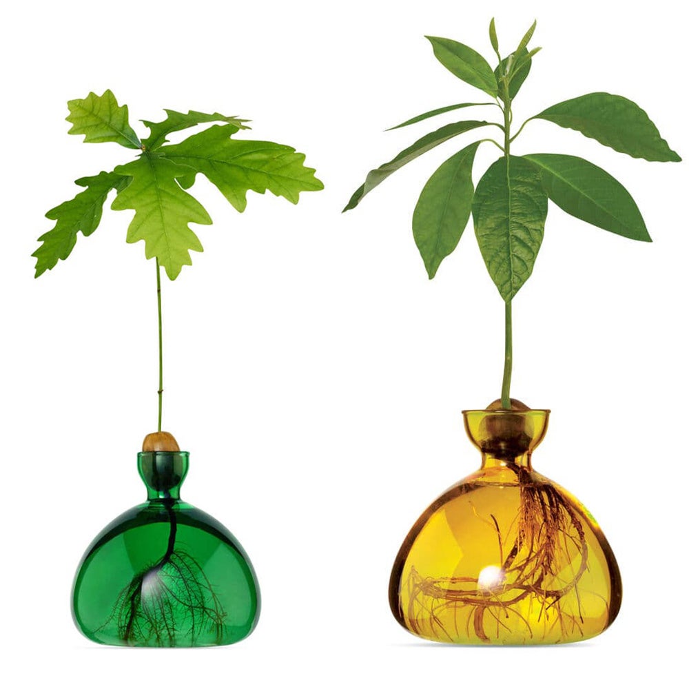 葉や根が発芽するときの美しさと形状を、この球根型のガラス花瓶で観察してみてはいかがでしょうか。ロンドンのILEX Studioが手掛けたベースは、アメリカの画家エルズワース・ケリーが描いた美しくシンプルな植物画にインスピレーションを得てデザインされました。花瓶に水を入れて上部の小さな受け口に種を置くだけで日々成長していく様子を見ることができるという、シンプルなプロセスを楽しむことができます。