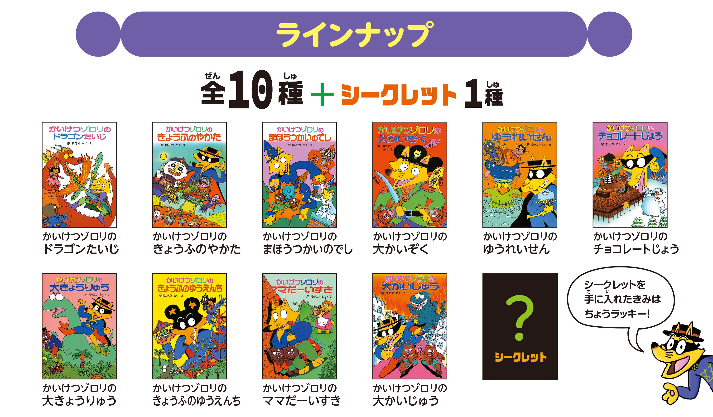 シリーズ累計3,500万部超の大ベストセラー児童書「かいけつゾロリ」の1~10巻が、手のひらに収まるミニチュア本になりました。