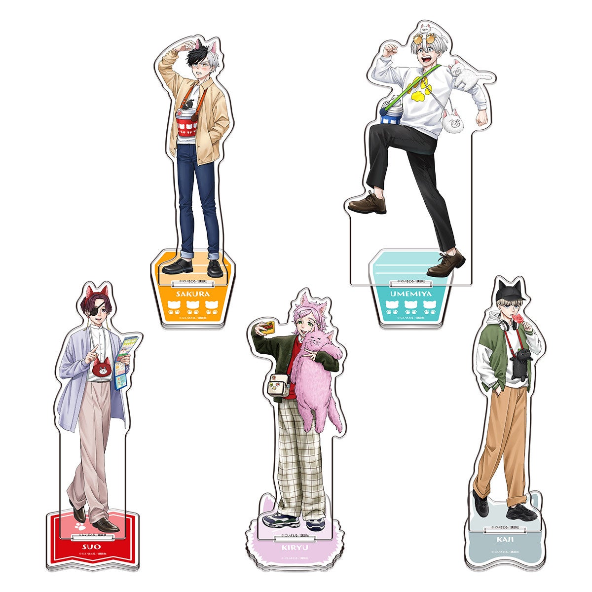 本イベントでは、学制服を着たねこ耳姿のちびキャライラストに加え、にいさとる先生描き下ろしの桜 遥(さくら はるか)、梅宮 一(うめみや はじめ)、蘇枋 隼飛(すおう はやと)、桐生 三輝(きりゅう みつき)、梶 蓮(かじ れん)の等身イラストがグッズや景品などで登場します。会場ではオリジナルグッズの販売や、今回のイベントのテーマである、“5人で楽しむ「遊園地」”のアトラクションをイメージしたミニゲーム「観覧車ガラポン」「GO!GO!ゴーカートゲーム」を楽しめるほか、キャラクターをイメージしたデザート&フードも販売します。また、オリジナルグッズは「ナムコパークス オンラインストア」でも販売します。