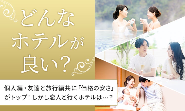 【どんなホテルが良い?】個人編・友達と旅行編共に「価格の安さ」がトップ!しかし恋人と行くホテルは・・・?