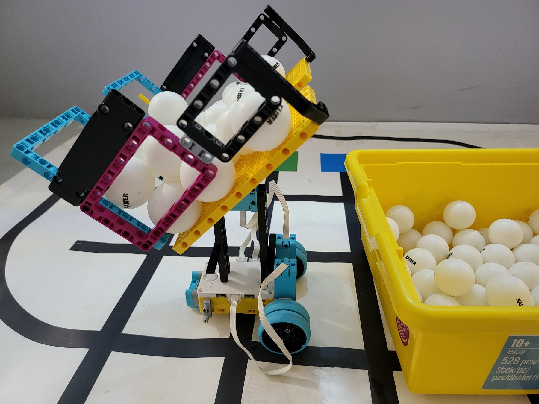 ピンポン玉を運ぶための機構や車型のロボットを動かすプログラムを学び、たくさんのピンポン玉をBOXに運びましょう!お友達と競い合うもよし、自身の記録を伸ばすことに集中するもよし。自分で考えたコース通りにプログラミングできるかな?試行錯誤の先には成功したときの大きな喜びが待っています。
