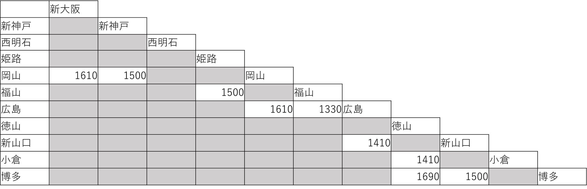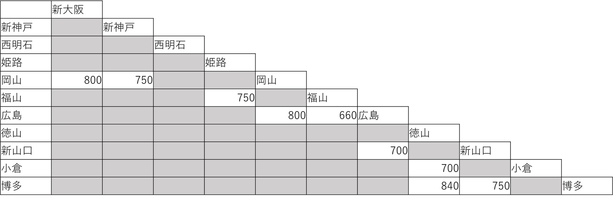 【山陽新幹線開業50周年記念】WESTERポイント超特典きっぷ おねだん【通常期】(単位:円)
