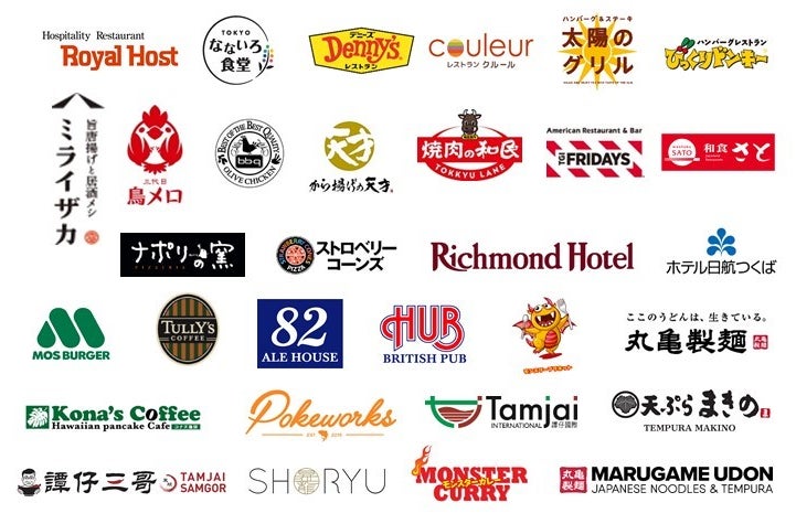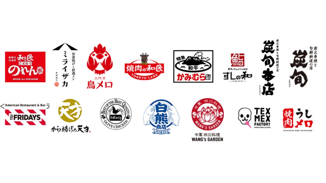 【ワタミグループの参加15業態ロゴ一覧】