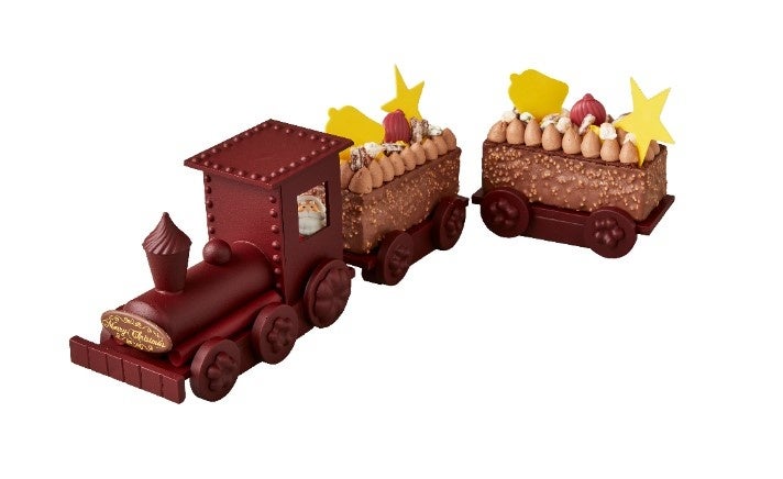 今年もクリスマス気分を盛り上げる4種類のバラエティー豊かなクリスマスケーキをご提供いたします。精巧な細工が大人心をくすぐる「チョコトレイン」を限定数量にてご用意する他、サンタクロースのベルトがアクセントの赤いケーキ「ストロベリー ピスタチオ マスカルポーネ」、カットすると雪が積もった丸太(ブッシュ)から美しい切り株の断面が現われる「マロン カシス ラズベリー ブッシュドノエル」、そして、スクエア型で定番人気の「ストロベリーショートケーキ」は3サイズからお選びいただけます。各クリスマスケーキの詳細は以下のとおりです。