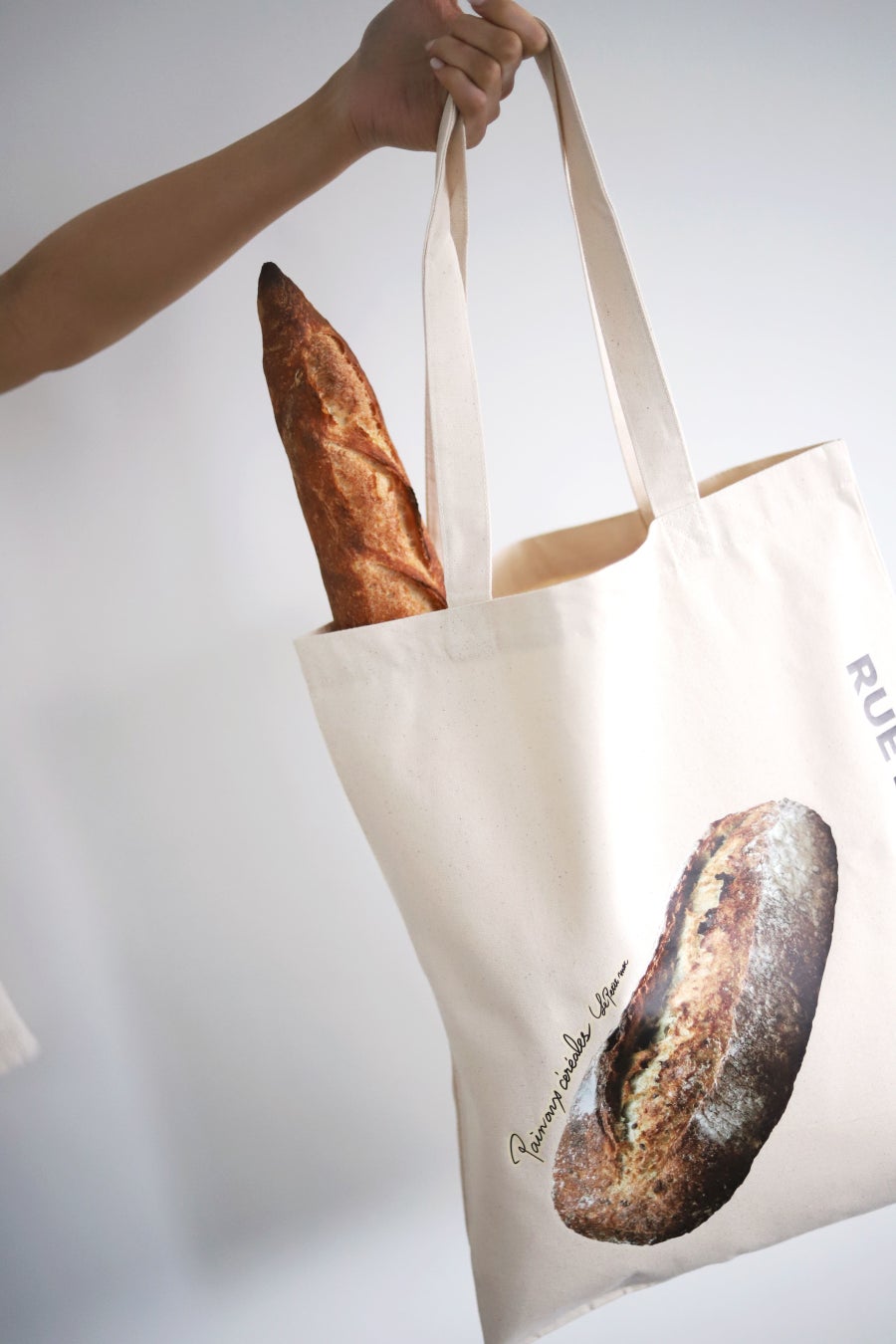 パン好きにはたまらないリアルなプリントバッグ。しっかりとした生地でデイリーに身に付けたい。