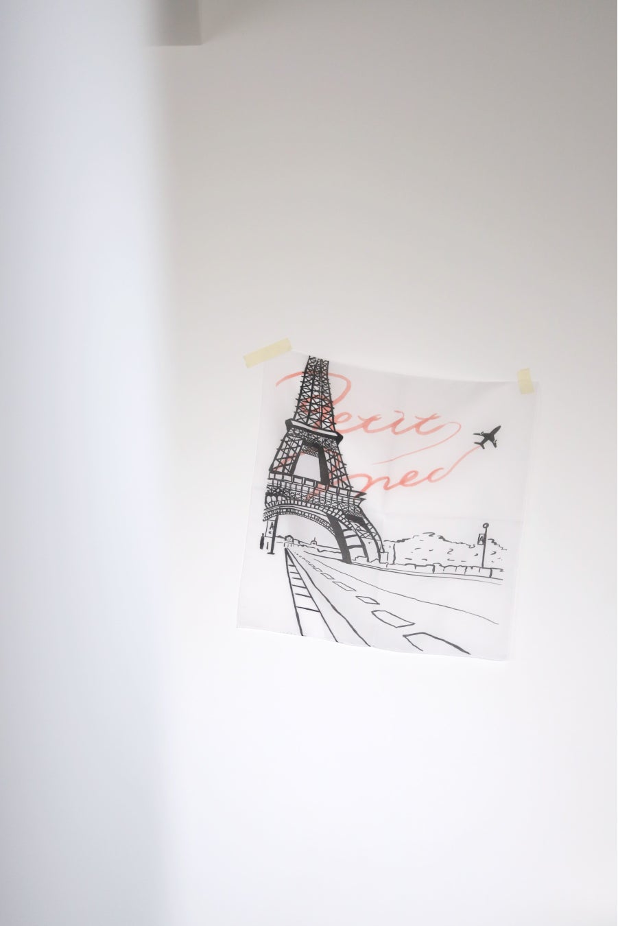 Le Petit Mec日比谷店に飾ってあるイラストをそのままスカーフにプリント!ラフな絵のタッチはパリを感じる風合い。