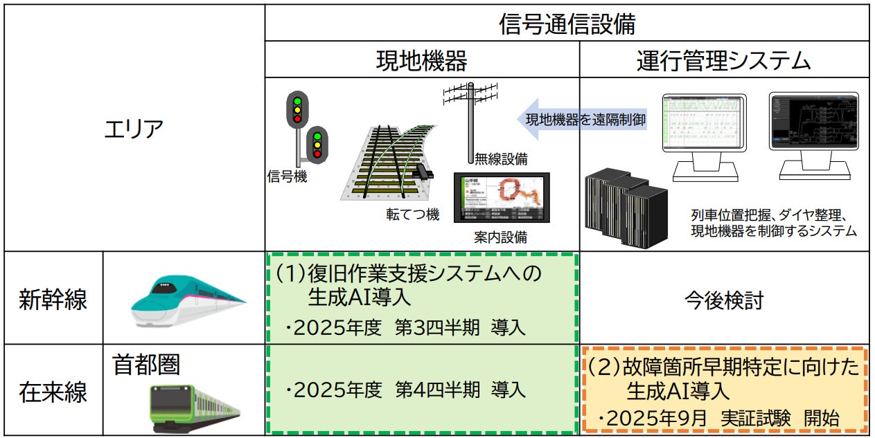 ○2025年9月には、首都圏の運行管理システム(ATOS※)を対象に、国内初となる生成AIの導入実証実験を開始し、システムトラブル発生時の早期復旧を目指します。