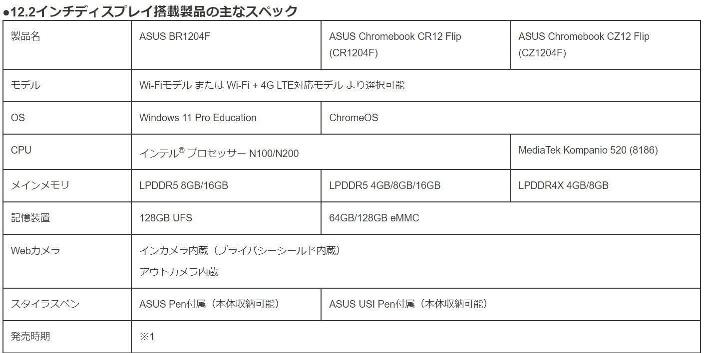 ASUS BR1204Fの製品情報:https://www.asus.com/laptops/for-students/br-series/asus-br1204f/(グローバル版製品ページ)