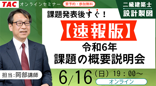 【TAC建築士】令和6年 二級建築士 設計製図試験 課題発表