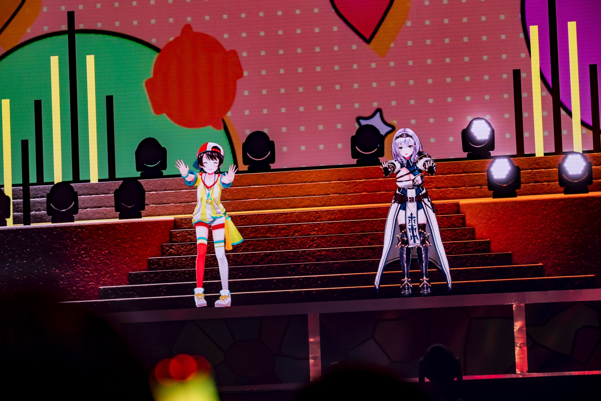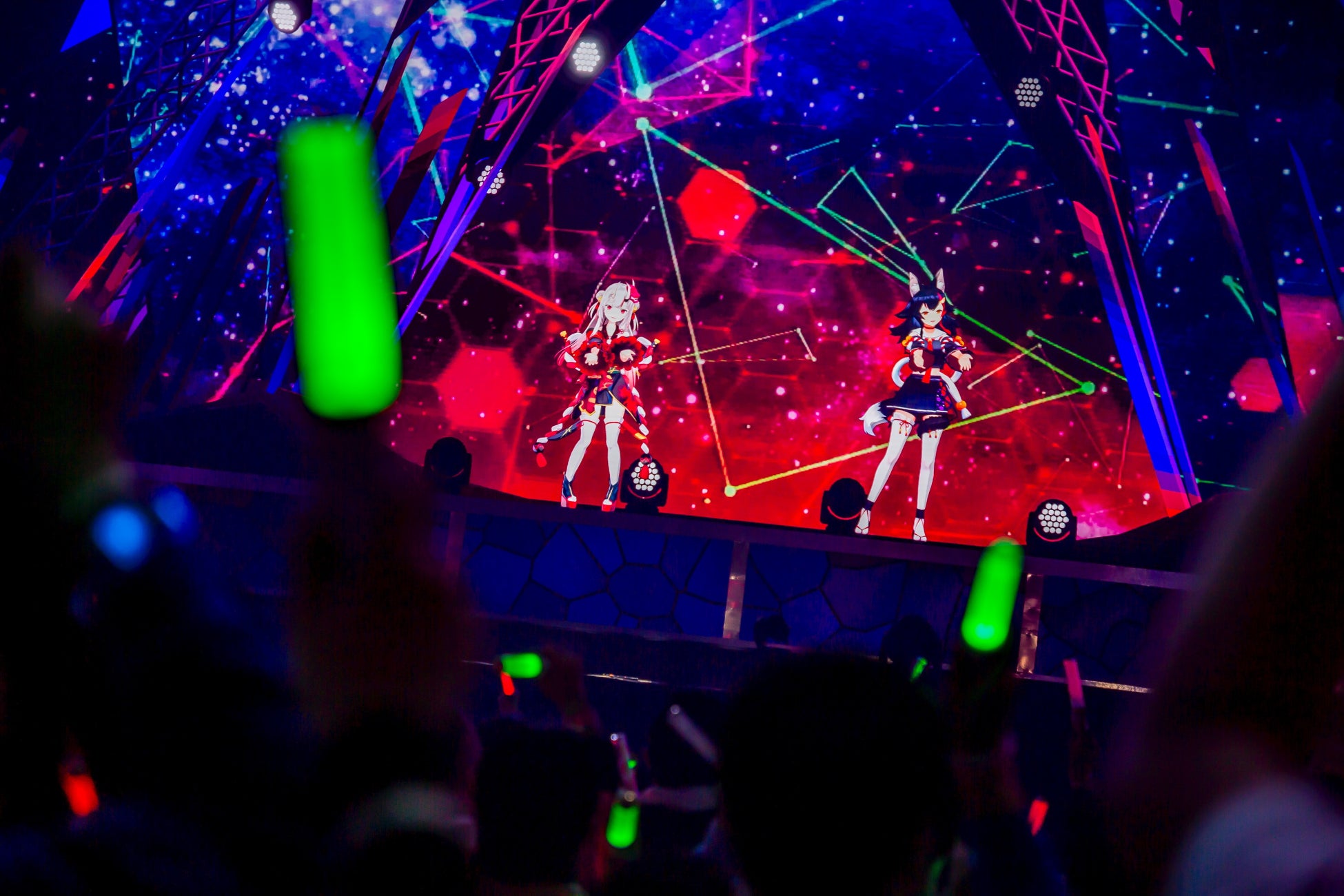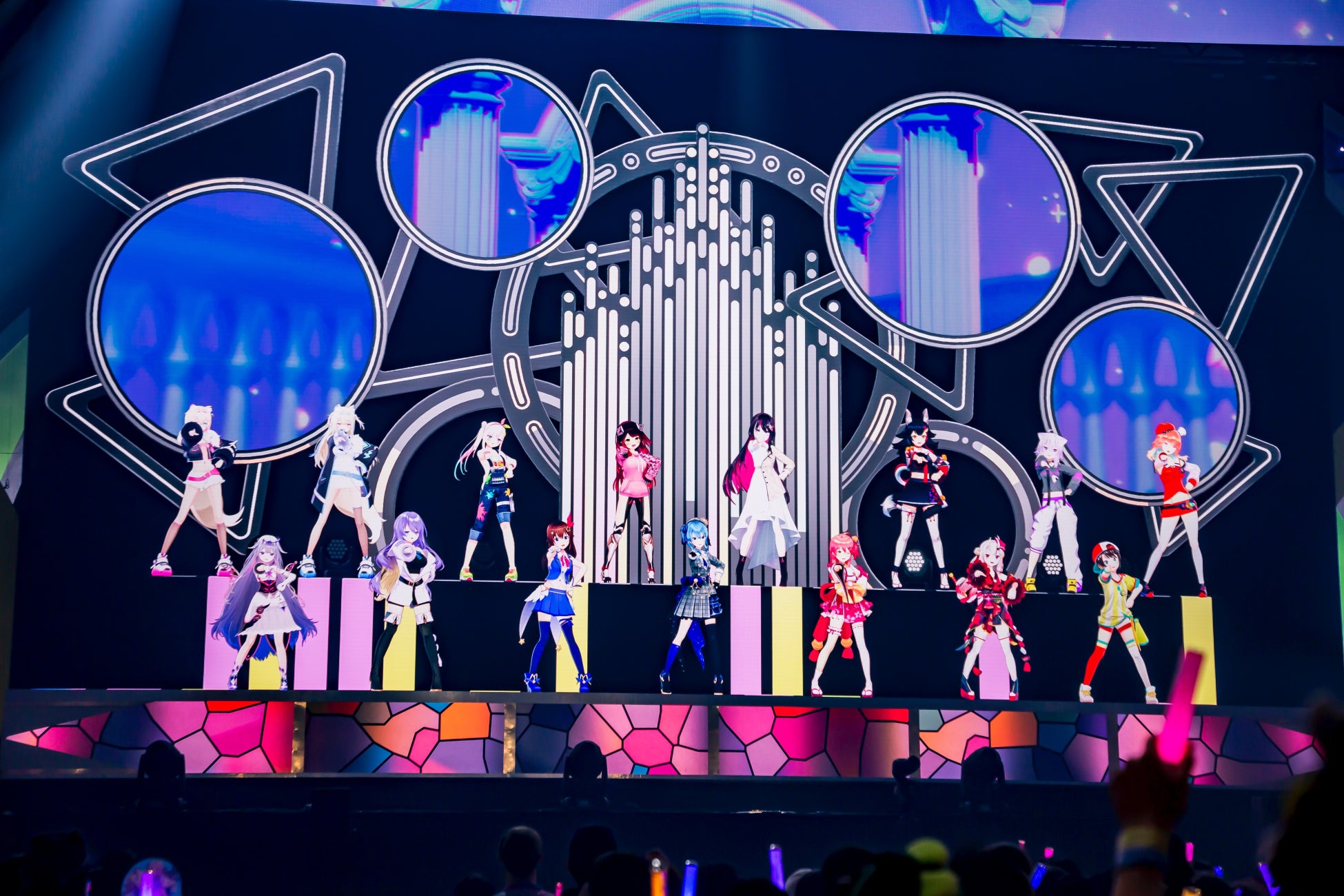 続いて登場した百鬼あやめは自身の楽曲「宵の余、良い!」「かわ世」「夢花火」の3曲をメドレー。レーザーを効果的に使った演出も加えながら、和風+モダンな楽曲の数々と持ち前の愛嬌を活かしたパフォーマンスで魅了する。一方、アイラニ・イオフィフティーン、アーニャ・メルフィッサ、ゼータのID組は超ときめき宣伝部の「すきっ!〜超ver〜」をカバー。 セリフパートなどもそれぞれ分担しながら息の合ったダンス&歌を披露した。