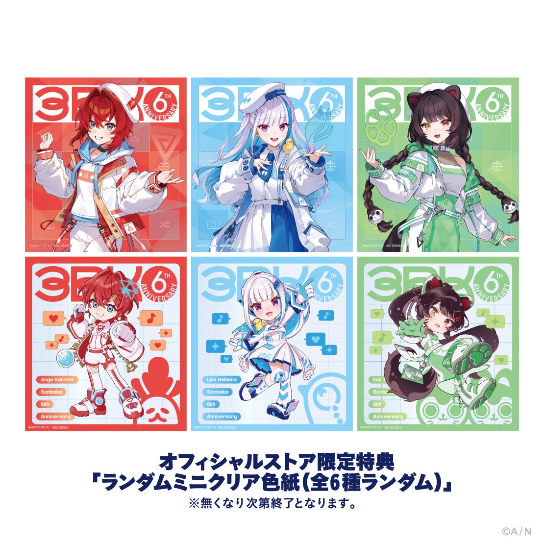 「さんばか 6th Anniversary」グッズをにじさんじオフィシャルストアにて税込3,000円以上ご購入いただいたお客様に 「ランダムミニクリア色紙(全6種)」をランダムで1枚プレゼントいたします。