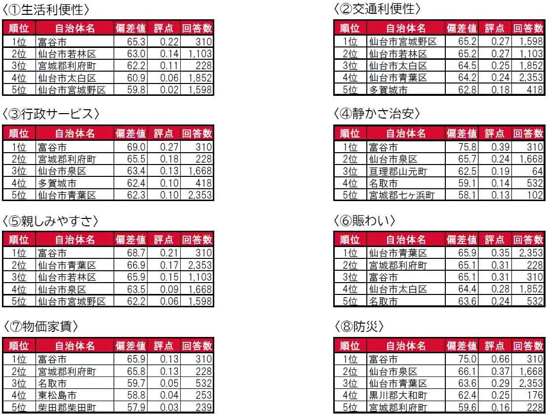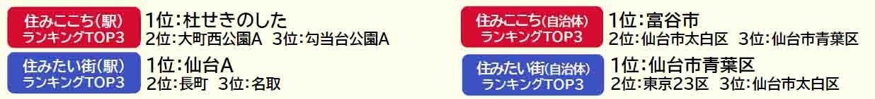 •「住みたい街(駅)ランキング」は、宮城県居住者の2024年の回答を東北エリア内の駅を対象にしてランキングを集計しています。「住みたい街(自治体)ランキング」は、宮城県居住者の2024年の回答を全国の自治体を対象にしてランキングを集計しています。