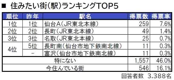 ■住みたい街(駅)トップは、6年連続で仙台A
