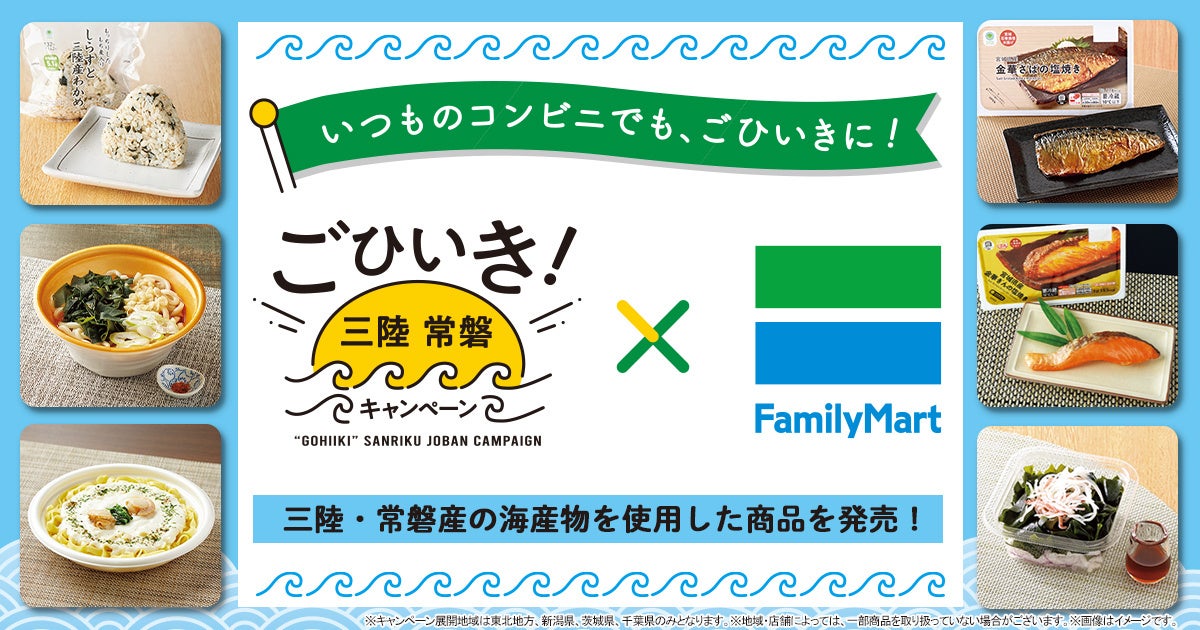 ファミリーマートでは2023年12月より本キャンペーンに賛同し、三陸・常磐産の海産物を使用した新商品の発売や、売場において三陸・常磐産の海産物を使用していることを訴求する専用の販促物等の掲示を通じて、理解促進および消費拡大につなげております。