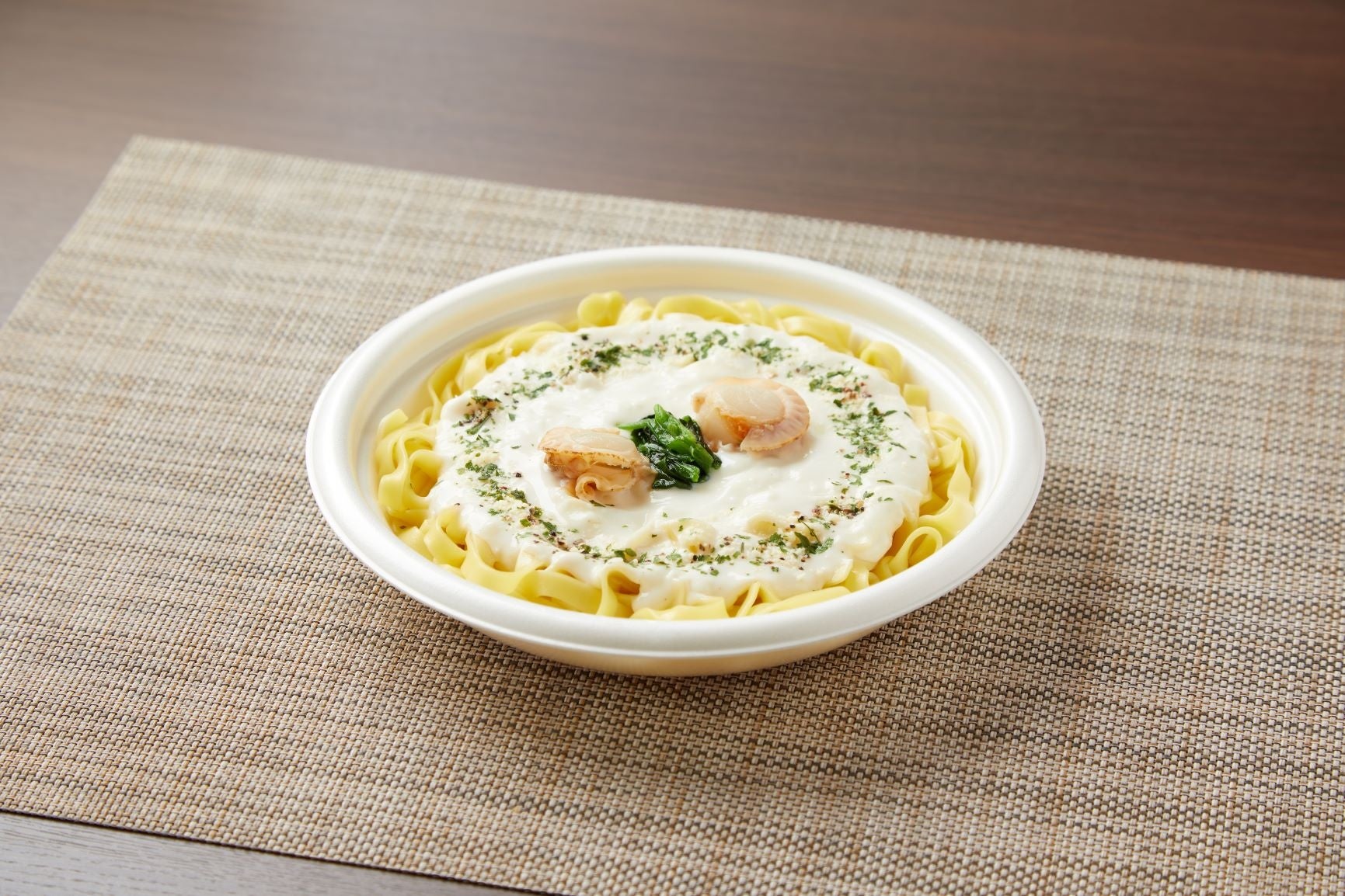 【内容】陸奥湾産のほたてをトッピングしたクリームパスタです。三層麺の生パスタを合わせました。