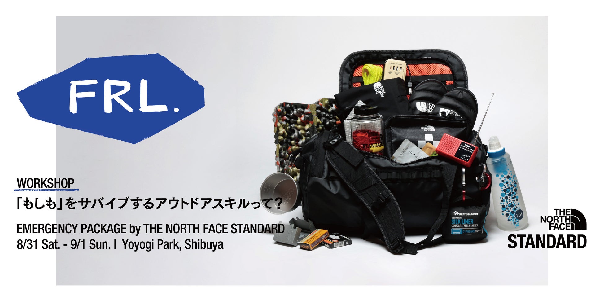 「Goldwin Field Research Lab.」はブース出展し、ワークショップ「『もしも』をサバイブするアウトドアスキルって? EMERGENCY PACKAGE by THE NORTH FACE STANDARD」を開催します。