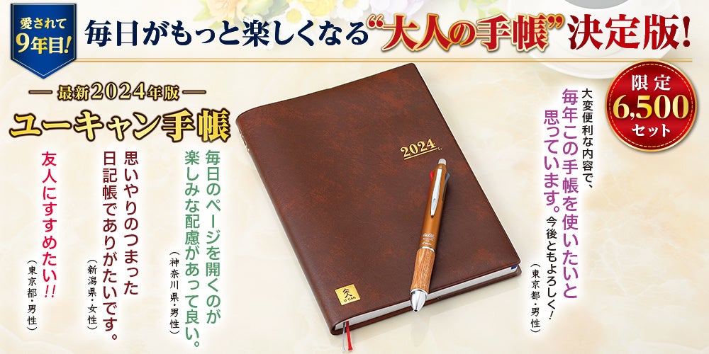 株式会社ユーキャン(東京都新宿区 代表取締役社長:品川 泰一)は、2023年11月14日(火)に『ユーキャン手帳2024』の販売を開始しました。先着順で6,500セット限定の販売となり、2大付録と一緒にお届けいたします。