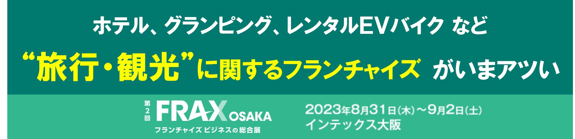 8月31日(木)から3日間、インテックス大阪にて開催される関西最大級のフランチャイズビジネスの総合展「FRAX(フラックス) OSAKA」では、旅行・観光に関するフランチャイズが出展します。ぜひこの機会に、旅行・観光業の”今”をご取材ください。