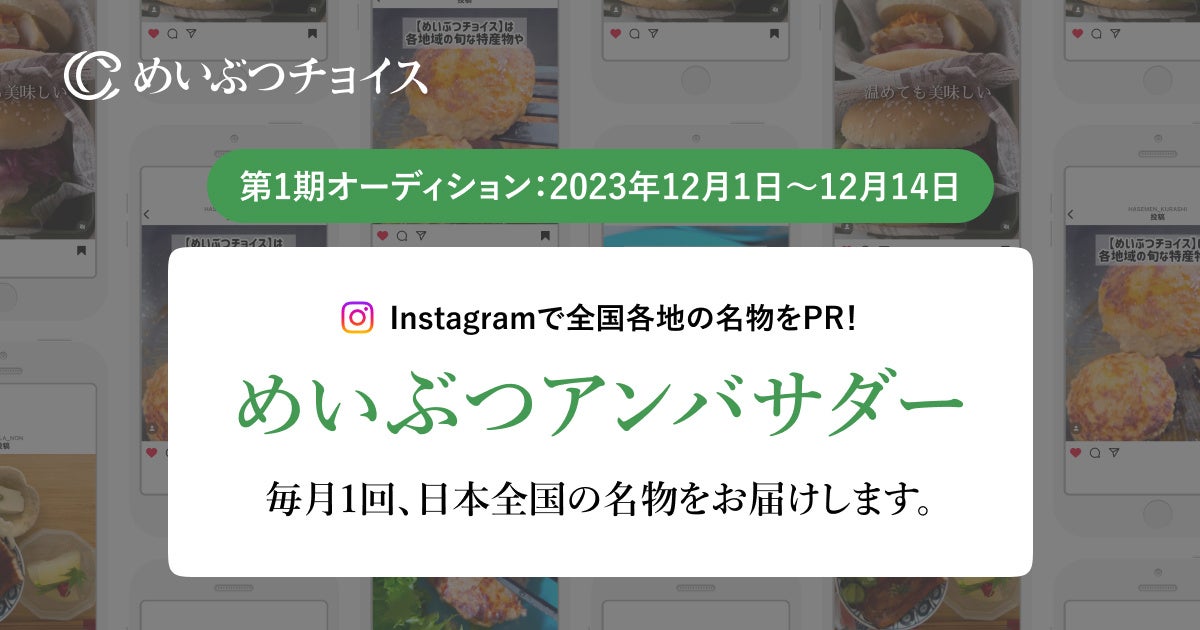 地域の“めいぶつ”を販売するECサービス「めいぶつチョイス」SNSで全国各地の名産品をPRする「めいぶつアンバサダー」の第1期オーディションを12月1日より開始