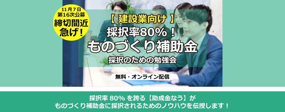 【建設業向け】採択率80%!ものづくり補助金 採択のための勉強会【助成金なう】