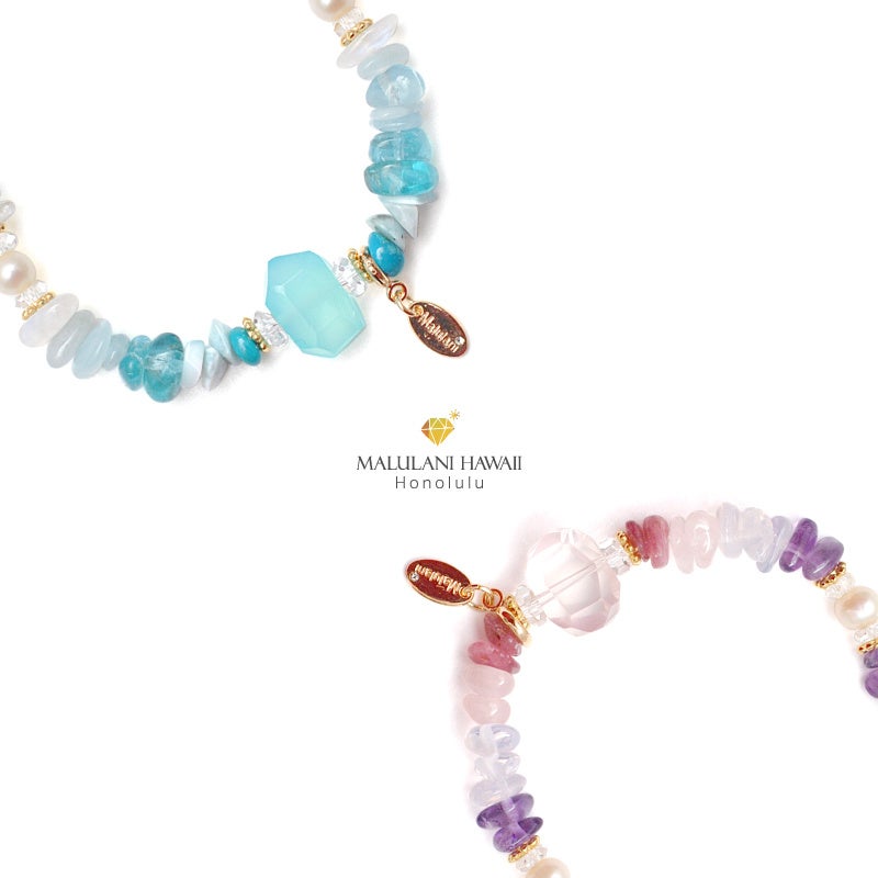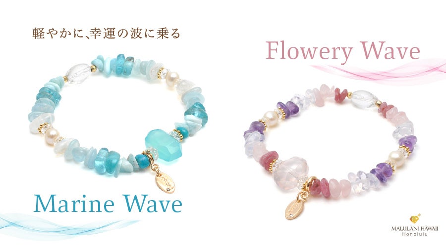 ハワイ発祥の天然石アクセサリーブランド「マルラニハワイ」より、海や空のようなグラデーションが美しい「マリンウエーブ」と、愛と美を象徴する石がエレガントな「フラワリーウエーブ」、人生のベストな波に乗ることを託した2種類のパワーストーンブレスレット「ウエーブシリーズ」を発売開始いたしました。