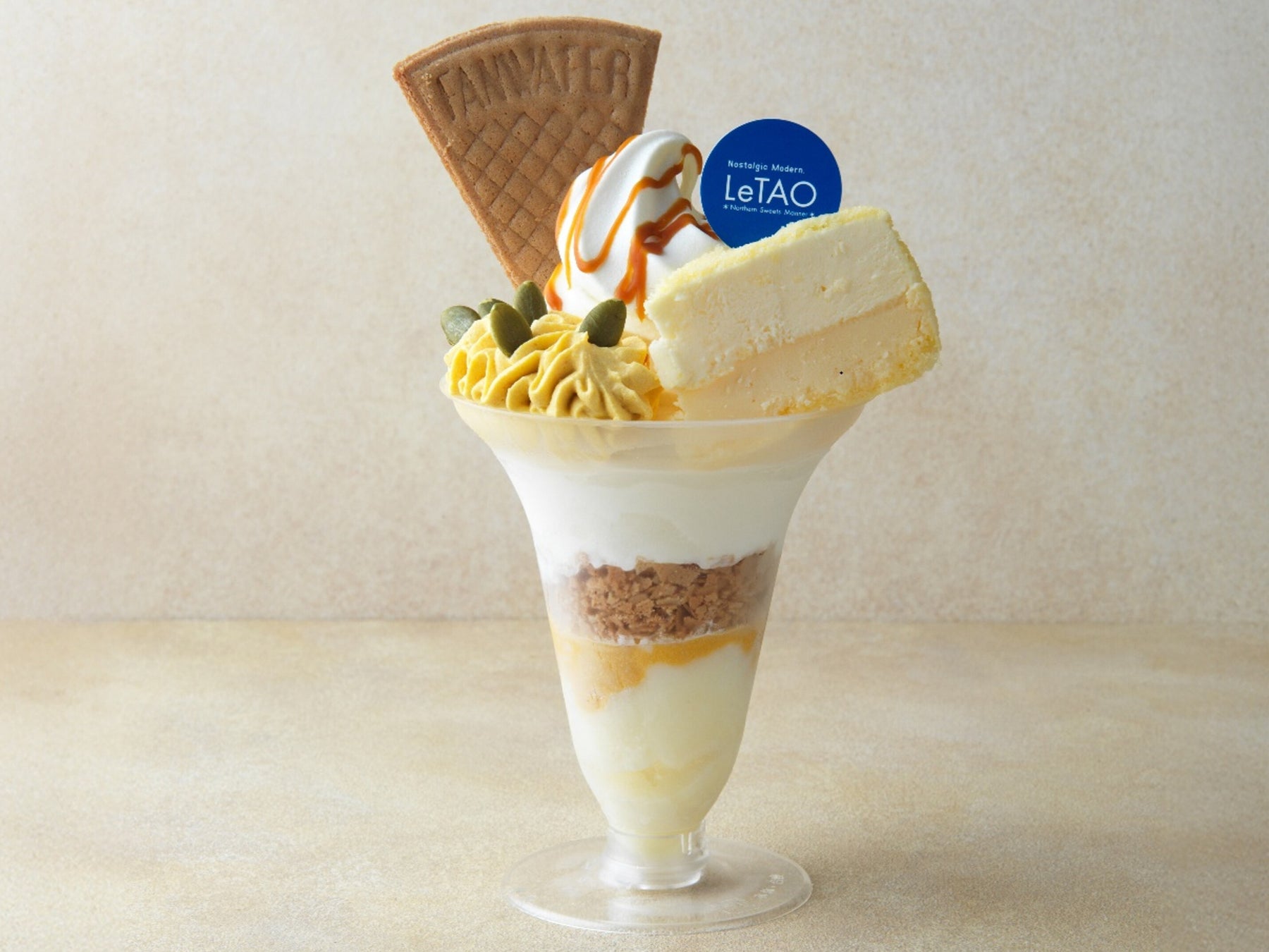 北海道産かぼちゃのクリームとルタオ一番人気チーズケーキを飾ったパフェ。