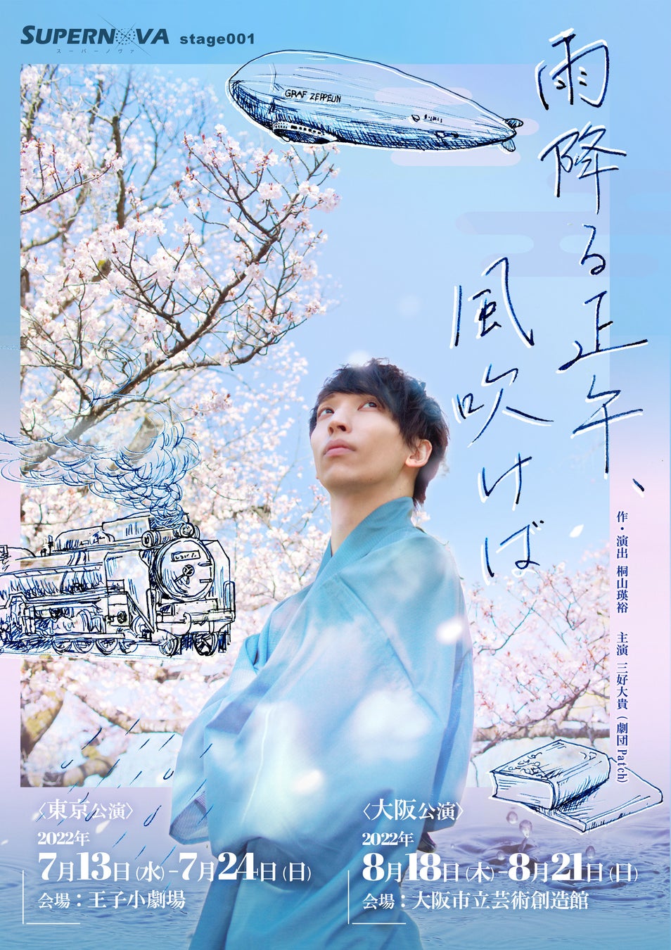 SUPER NOVA(代表:桐山瑛裕)主催、SUPER NOVA stage001『雨降る正午、風吹けば』が2022年7月・8月、東京・大阪の二会場で上演されます。