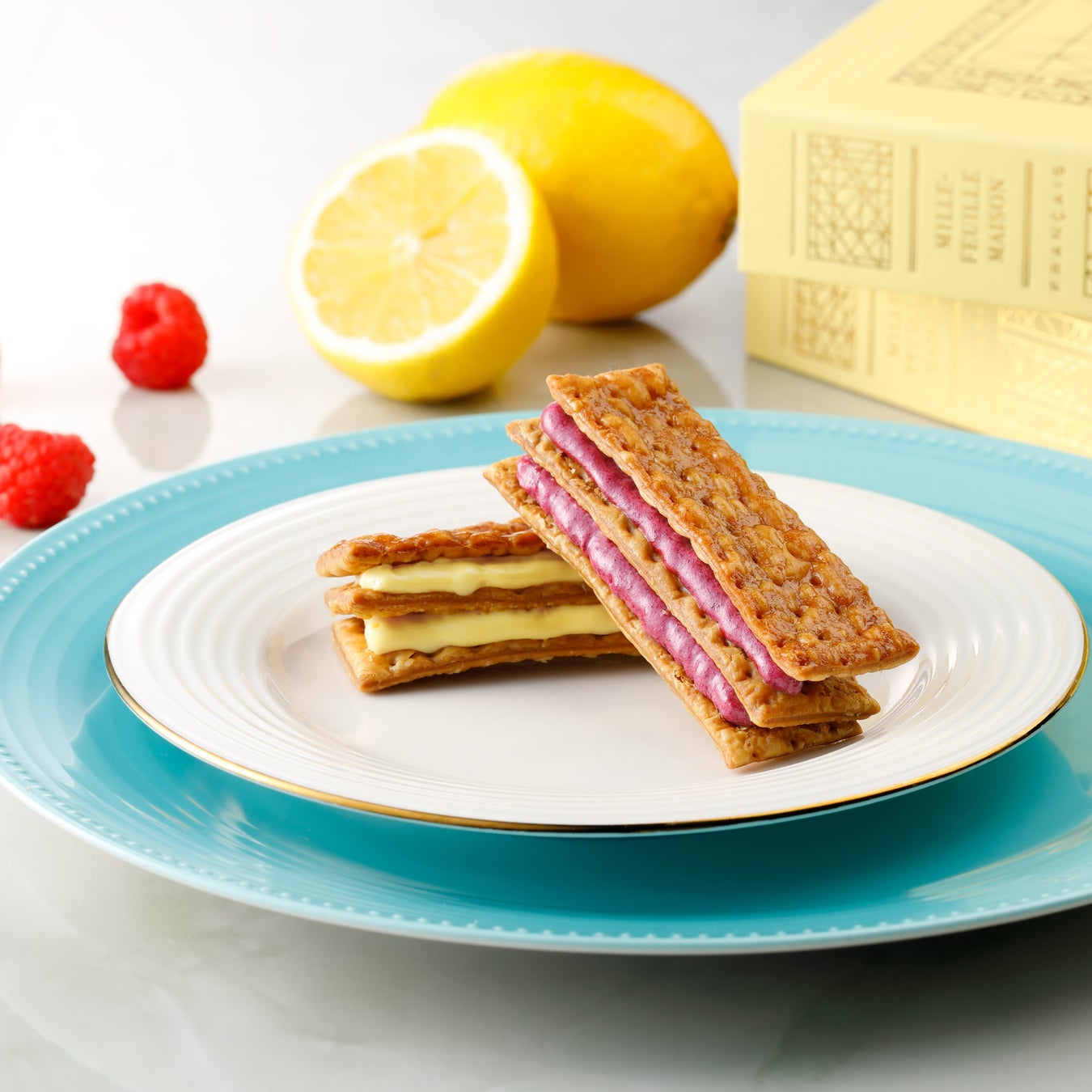 こだわりのフィユタージュに、爽やかな香りのレモンクリームをサンドした「レモン」と甘酸っぱいフランボワーズクリームをサンドした「フランボワーズ」が入ったアソートです。