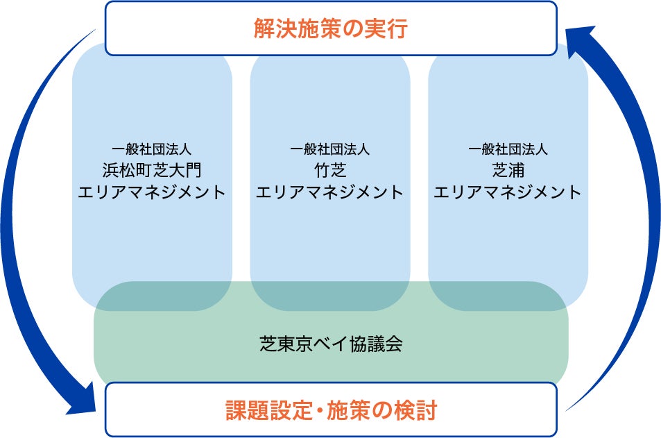 浜松町芝大門・竹芝・芝浦の3地区で開発および運営を行う事業者(以下「3地区事業者」)は、この度、各々の地区で運営するエリアマネジメント組織が抱える共通の地域課題を解決し、地域の価値向上を目指す共創型のまちづくり組織「芝東京ベイ協議会」(以下「本協議会」)の設立を決定しました。