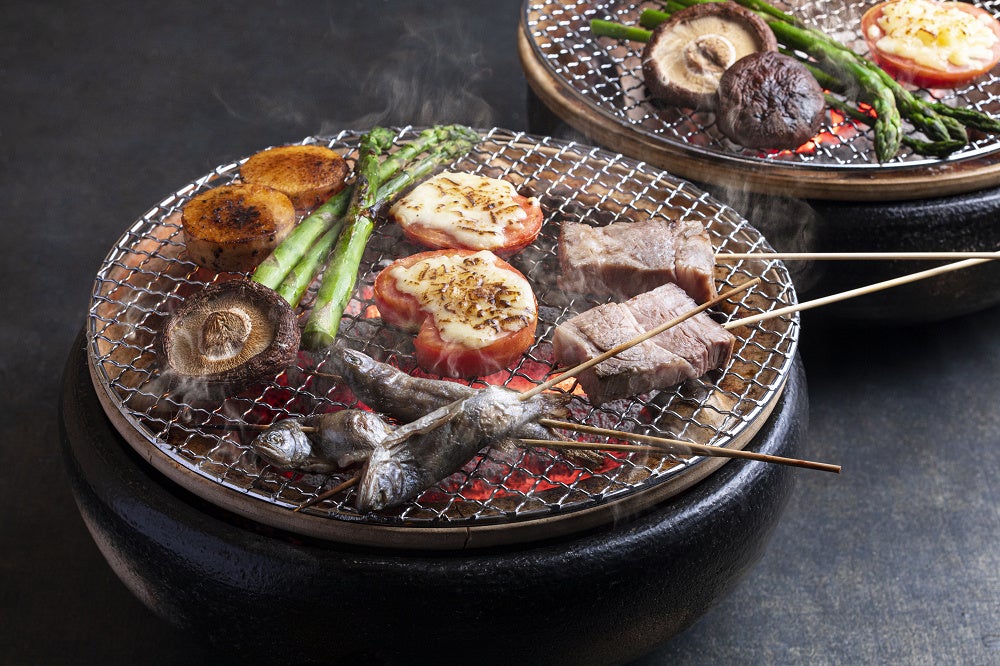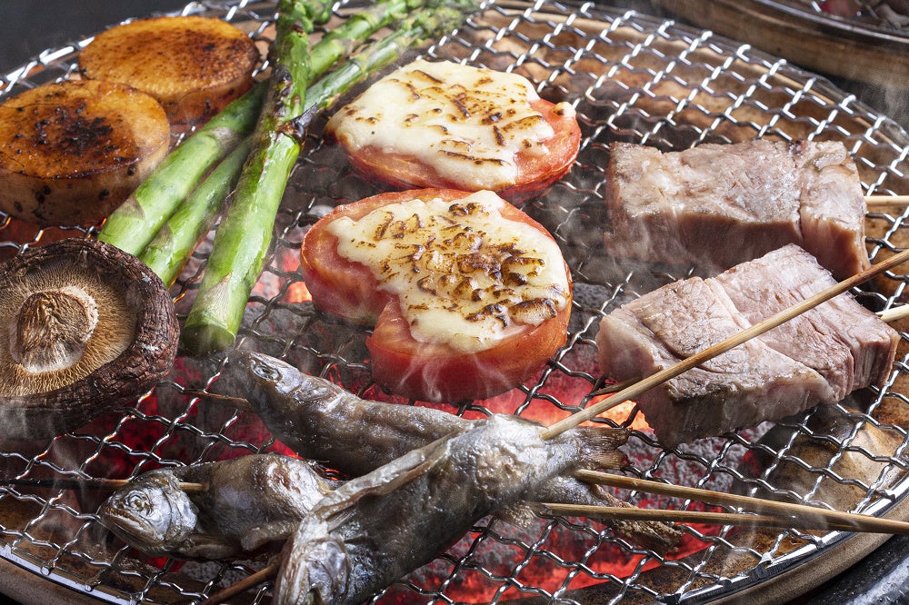 炭の香りが食材に移り、口に入れた瞬間に広がる香りが食欲をそそります。