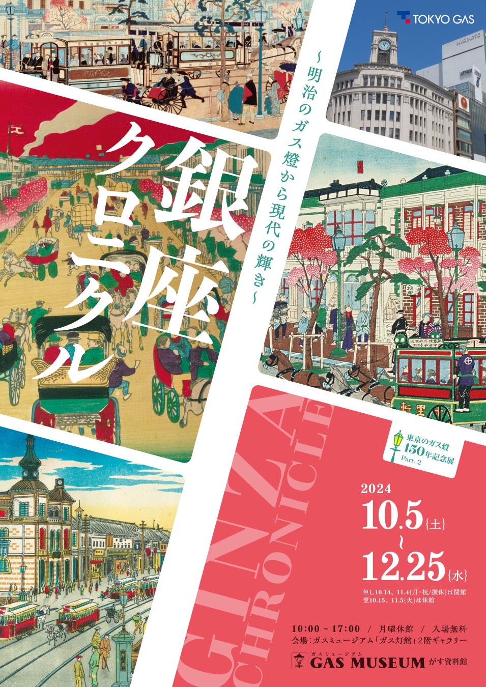 ガスミュージアムは、2024年10月5日(土) から12月25日(水)まで、「~明治のガス燈から現代の輝き~銀座クロニクル」を開催します。