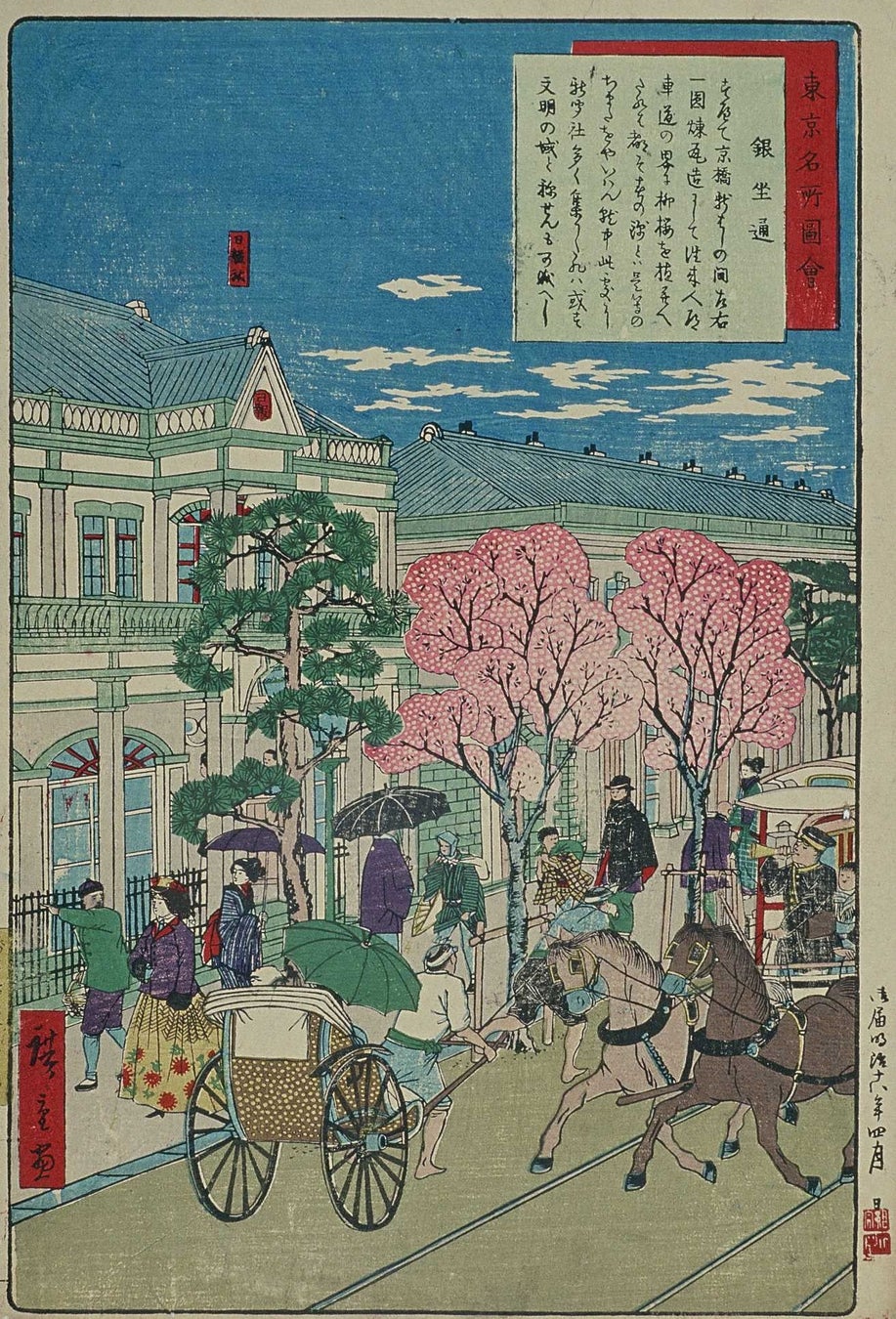 展示では、明治時代の銀座の街並みを描いた錦絵と、現在の風景写真を対比して、150年以上にわたる街の変化を紹介します。