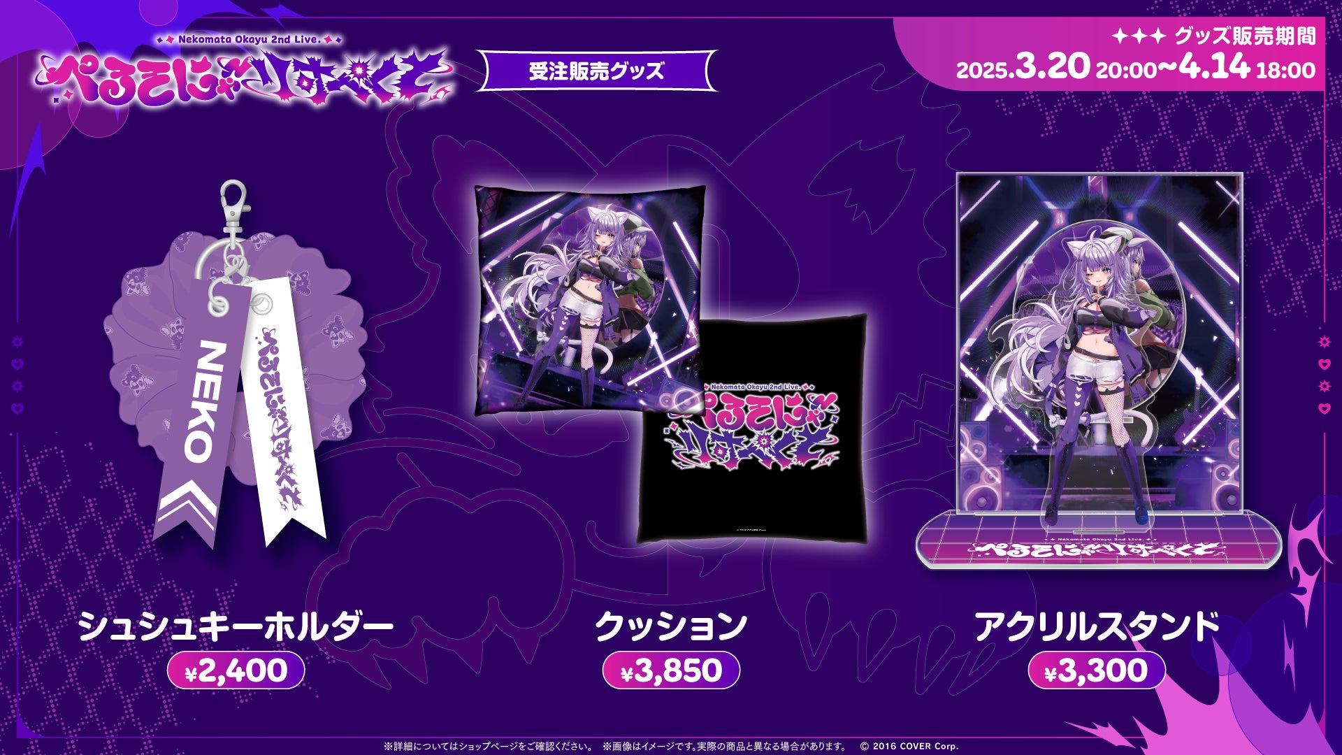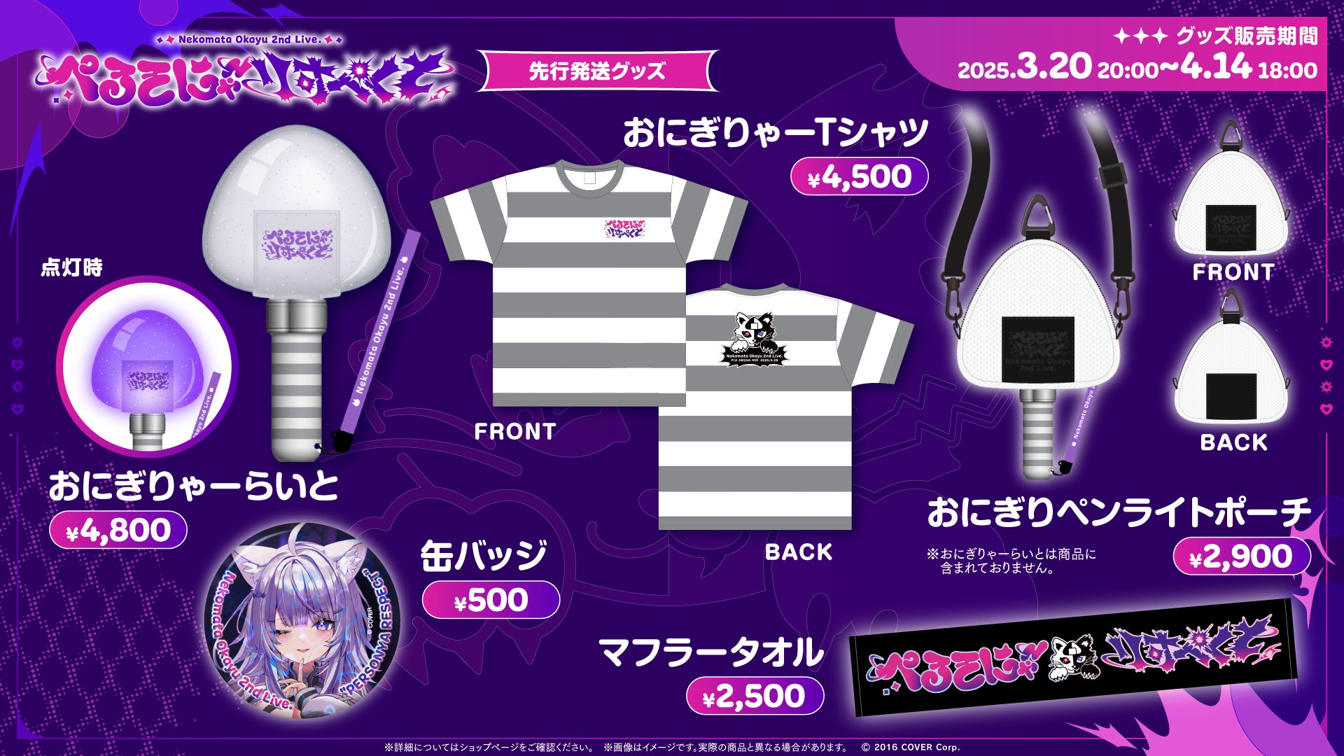 本公演開催に合わせ、本日3月20日(木)より猫又おかゆ 2nd Live.「ぺるそにゃ~りすぺくと」ライブグッズが解禁されました。