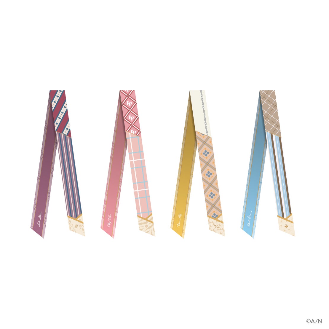 グッズラインナップは、撮りおろしビジュアルを使用したボイスアクリルスタンド、ランダムチェキ風カード、ランダム缶バッジ、アクリルフレーム&ブロマイド風カードセット、ミニアクリルブロック。ライバーのモチーフを使ったポーチ、リボンスカーフ。さらに「放課後オリエンス Enjoy School Life!」のビジュアルのにじぬいと、ライバーそれぞれにフィーチャーした4種のグッズをあわせた全12種類。