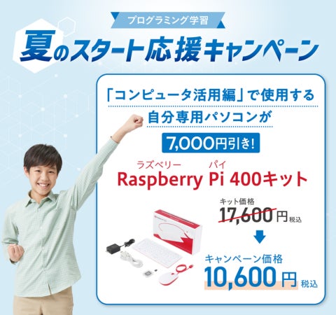 今なら、講座で使用するRaspberry Pi 400キットが7,000円引きとなるキャンペーン実施中!