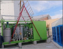 また、従来までのビオストックが提供する超小型バイオガスプラントの最小モデルは20フィートコンテナ2台でしたが、本展示のバイオガスプラントでは、12フィートコンテナ1台にプラントの各機器を格納し、トレーラー1台で運搬可能な可搬式プラントとなっております。