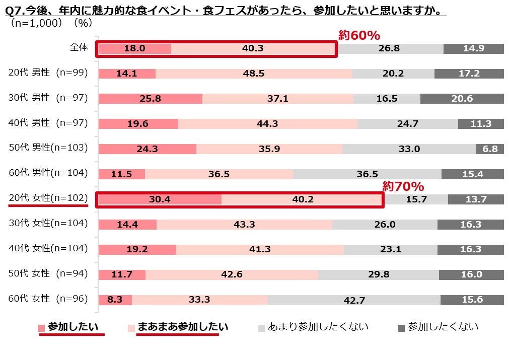 ・年内のイベントへの参加意向は約60%で、20代女性は70%。