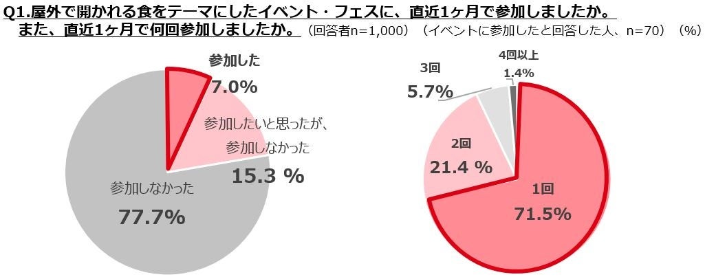 ・直近1ヶ月以内に食イベントに参加した人は7%で、参加したいと思ったが参加しなかった人が15%。