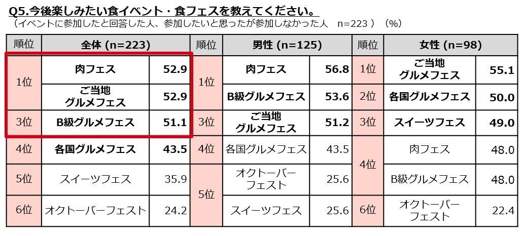 ・今後楽しみたいイベントは「肉フェス」「ご当地グルメ」「B級グルメ」がTOP3。