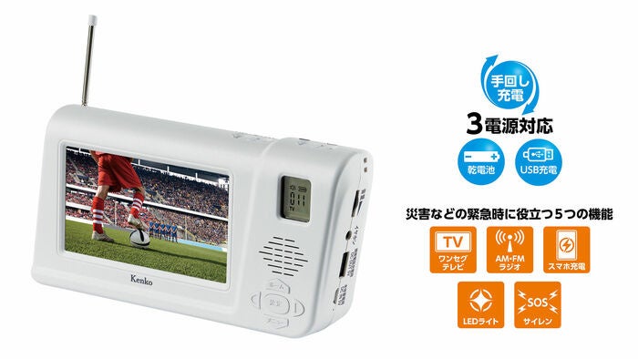 株式会社ケンコー・トキナー(本社:東京都中野区 代表取締役社長:山中 徹)は手回し充電で災害時にも使える、4.3インチで見やすいワンセグTVラジオ「手回しワンセグTVラジオ KR-013AWFTE」の販売を、2022年5月20日より開始いたします。