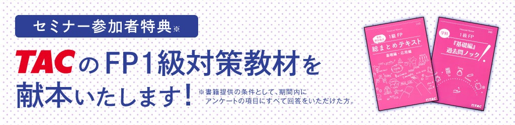 セミナーにご参加の方には特典としてTACのFP1級対策教材(※)を献本いたします。TACのFP1級試験対策教材を体感してみたい方にもオススメです。