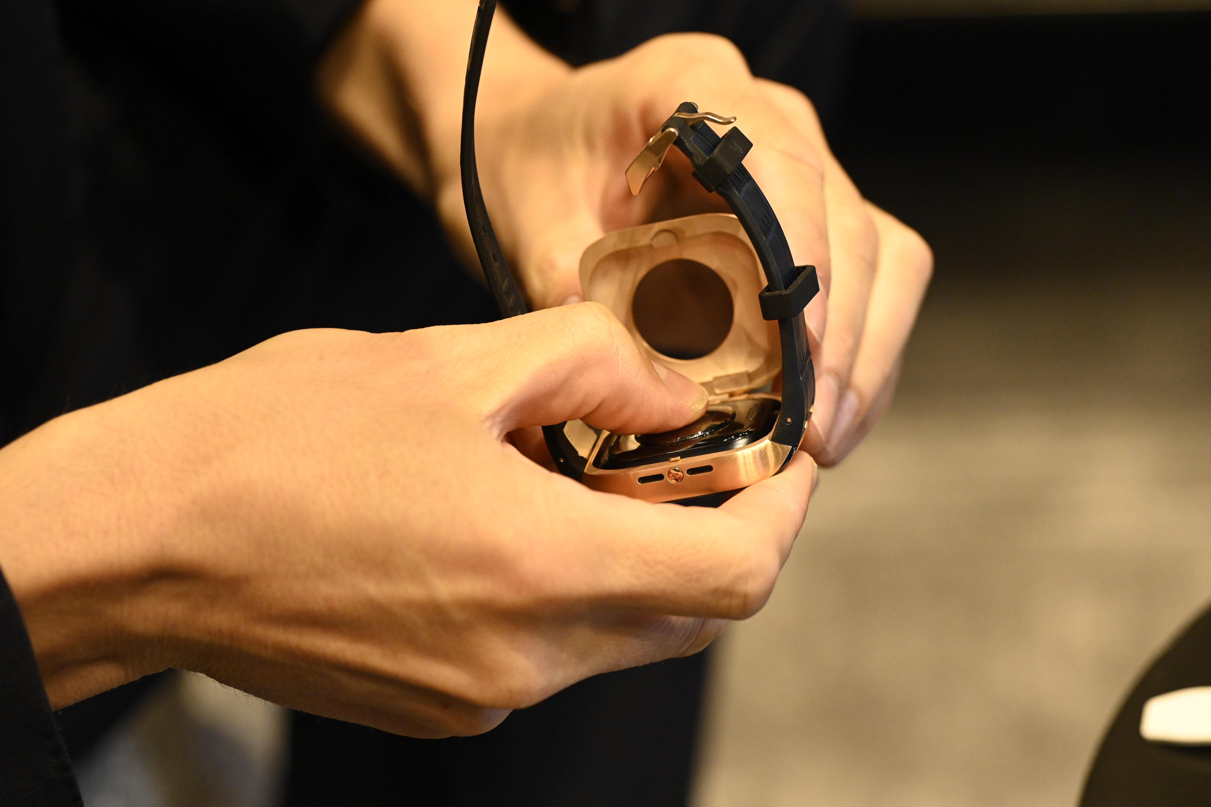③ハンブルリッチのケースにアップルウォッチを入れます。工具は不要です。