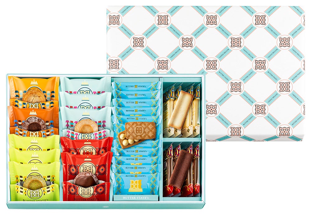 バターステイツクッキー(THEバターリッチ 4個・ピスタチオバター 4個・ショコラバター 2個・アーモンドバター 2個)、バターステイツ THEフォンデュショコラ 3個、バターバスケット 12個、バター衣しゃ(バター・チョコレート)各5枚