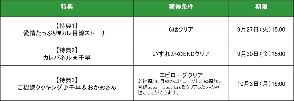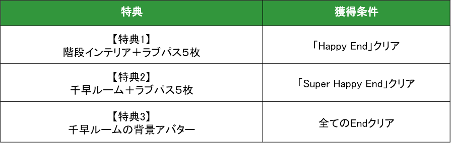 - 國府田千早・続編カレ目線ストーリー配信記念 ENDクリア特典