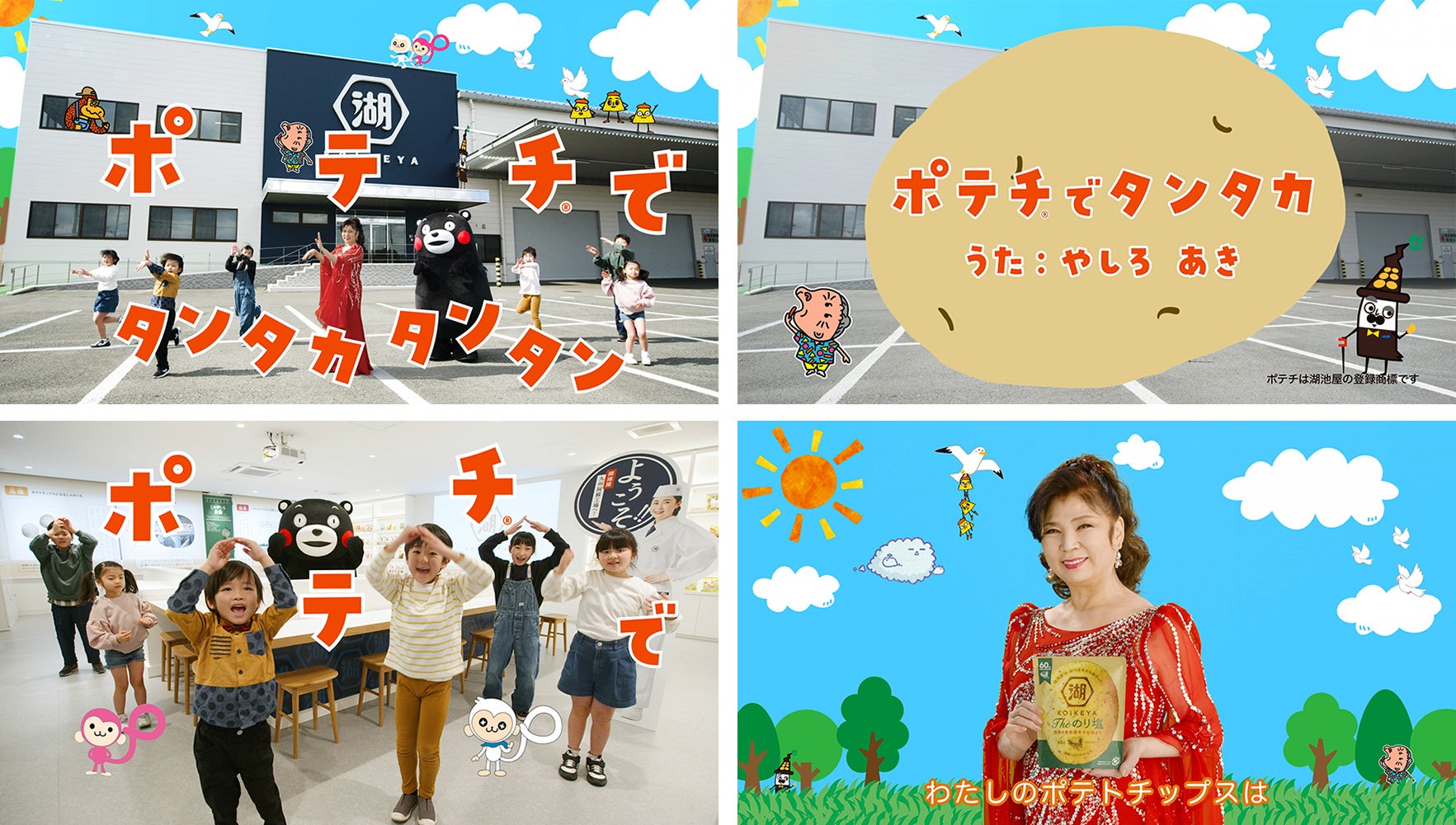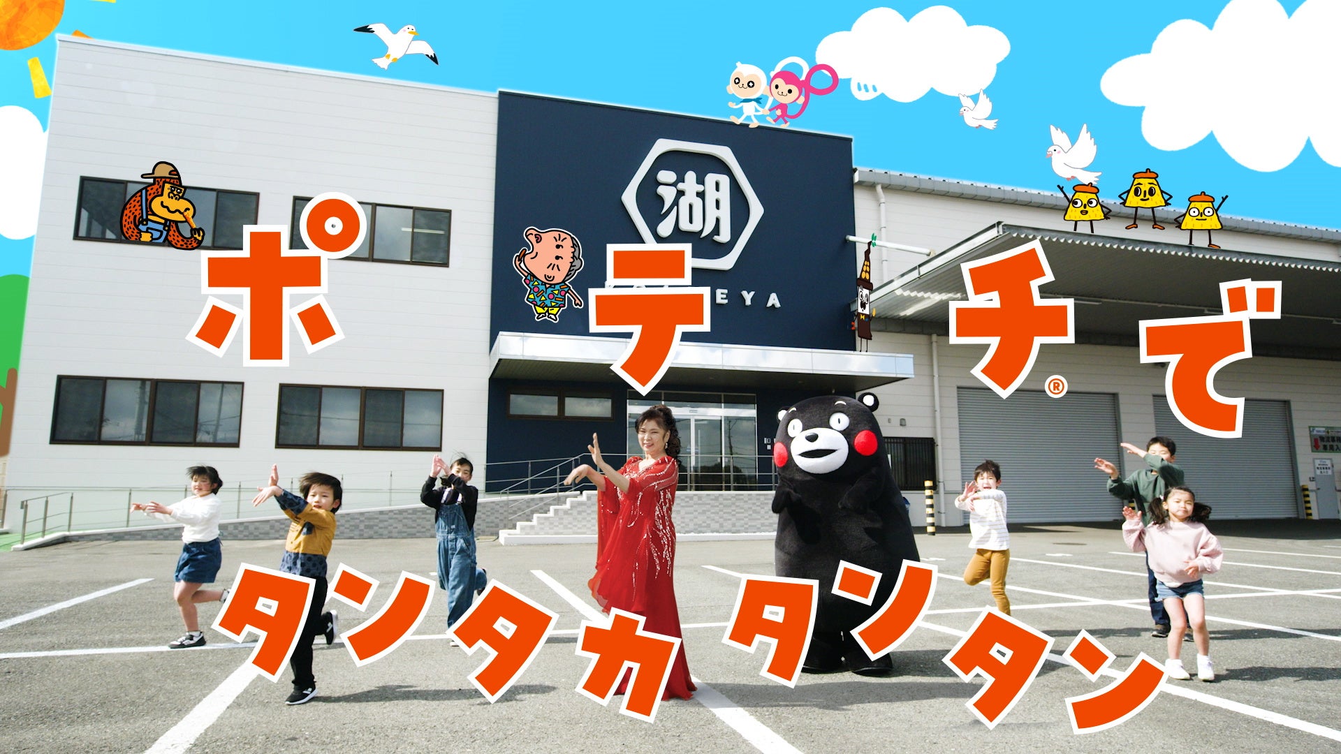 ミュージックビデオでは、八代亜紀さんをはじめ、熊本県営業部長兼幸せ部長“くまモン”、熊本県出身のプロゴルファーであり、湖池屋 九州阿蘇工場アンバサダーである古閑美保さんの他、熊本を代表する観光地をバックに九州阿蘇工場の地元・益城町の子どもたちや九州阿蘇工場の社員たちが楽しいダンスを披露。見ているだけで心も体も元気になる「ポテチ®でタンタカ」のリズムとダンスにぜひ、ご注目ください!